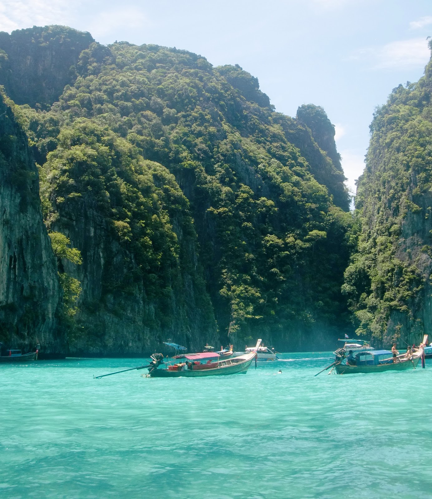 Koh Phi Phi, en Krabi, es un archipiélago en el  mar de Andamán del suroeste Tailandés, a una hora en ferry de Phuket. Phi Phi Leh es donde se localiza Maya Bay, conocida por escenario de varias películas, isla deshabitada al contrario de Phi Phi Don que a través de un hermoso entorno natural explota su belleza con el turismo, quizá masivo, pero manteniendo sus básicos: playas fabulosas, flora frondosa, naturaleza en estado puro formando vistas espectaculares.