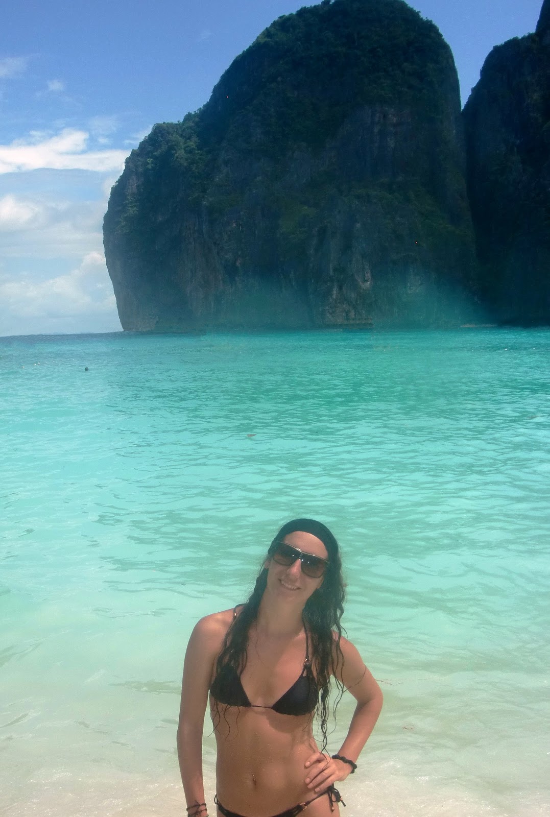 Quería empezar con una foto de Maya Bay para visualizar claramente alguno de los motivos por que se grabó aquí la película La Playa de Leonardo Di Caprio, pero ni en la imagen se puede apreciar la maravilla que allí descubrimos. En el sur de Tailandia parece que es lo más cotidiano y simple, aunque el resto de los humanos alucinemos con los paisajes que se forman en este conjunto de islas. Además la luz se refleja tan intensamente que no es fácil abrir bien los ojos, cuando me quise acostumbrar y pude hacer el primer visionado entre mis gafas oscuras no daba crédito lo que veía, el único punto negativo es que como yo en esa bahía había decenas de personas….