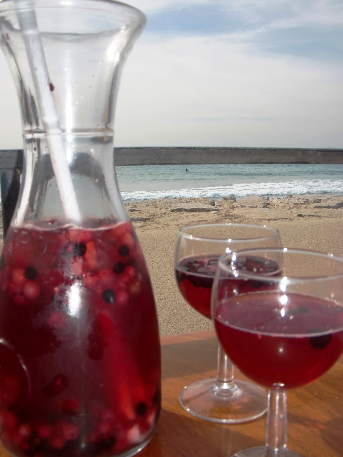 Como pequeño consejo: Algo que no se puede dejar de probar es la Sangria Branca y la Sangria de Champanhe com Frutos Vermelhos, me parece ideal el momento paisaje de playa, con su correspondiente sonido acompañado por cualquiera de estas bebidas que entra como agua con el calorcito del sol pegando en la cara. Ademas acostumbrada a los precios del Mediterraneo va a ser dificil evitarlo, y aunque España es famosa por las sangrias, igual deberiamos aprender de nuestros vecinos sobre este tema del que tienen mucho más que ofrecer.