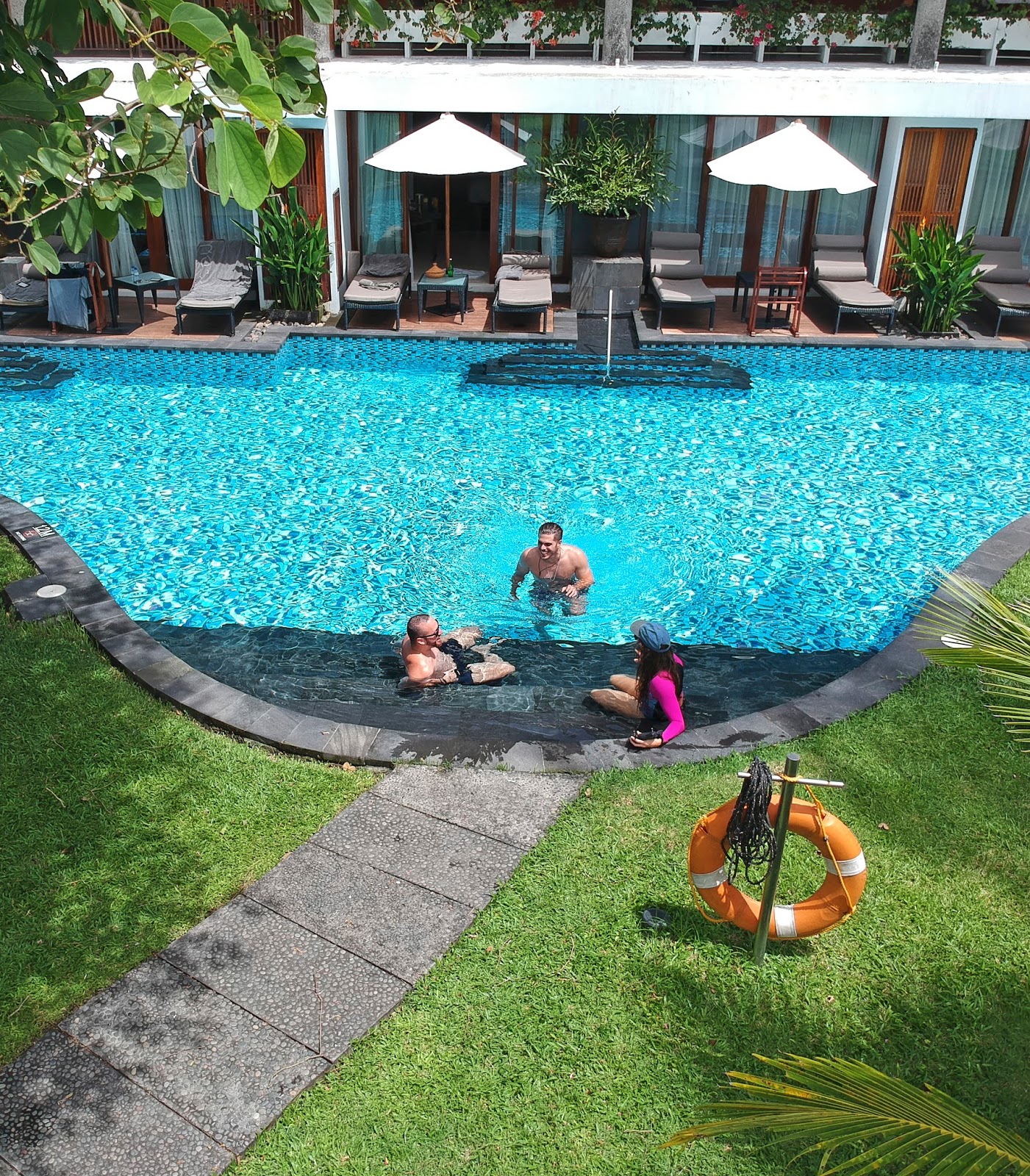 + Alojamiento: Melia Bali fue la opción perfecta, un resort con todo lo necesario en frente de una playa con olas. Creo que no puedo pedir nada mejor que eso. Melia Bali tiene opciones de todo tipo, solo alojamiento o Todo Incluido, nosotros estuvimos en The Level y eso nos daba acceso a una piscina exclusiva, así como otros beneficios que aprovechamos. De lo que más gozamos fue del servicio de habitaciones cada mañana en el desayuno, donde pedíamos fruta fresca cortada, yogurt, cereales, tortilla o huevos con vegetales, bollería y tortitas con fruta y sirope, solo de pensarlo ya se me cae la baba.
