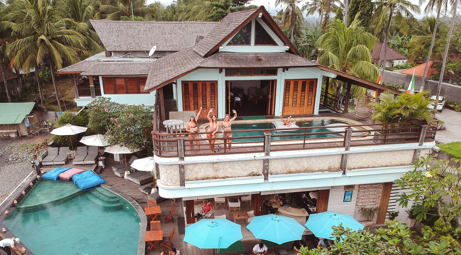 Komune Resort (B). El gran clásico de la playa, con su infinity pool en frente de la ola de derechas más aclamada en la isla. Ubicado en la virgen costa este de Bali donde ofrecen el sueño para un surfer: olas de campeonato, descanso, comida rica y una piscina desde donde puedes controlar el pico.