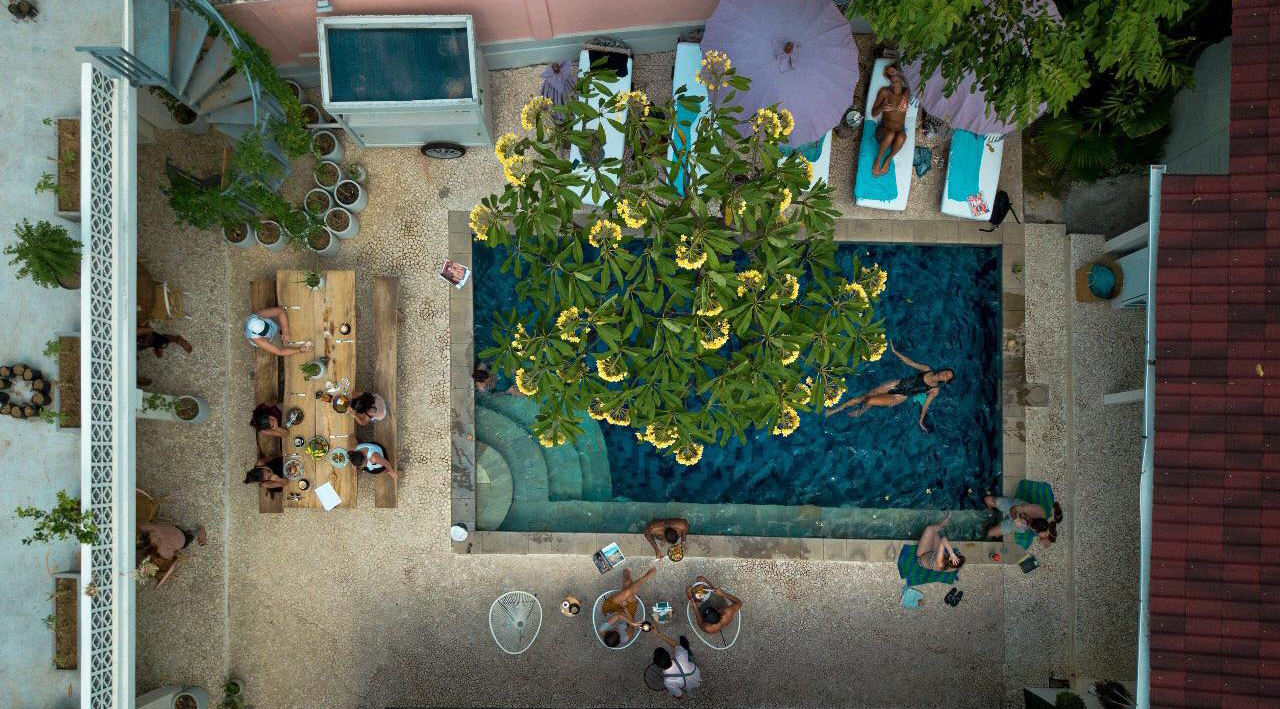 Si eres un nómada digital, este te va a encantar para refrescar tu vista y huir de la típica oficina. Además la carta tiene comida deliciosa, orgánica y saludable. Uno de sus valores extra es que apoyan los productos locales, con lo cual sus ingredientes provienen de la comunidad y la agricultura de la zona. Hay varios espacios para encontrar tu sitio: en la piscina, en la azotea o en las mesas a la sombra para concentrarte trabajando.